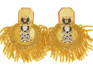 Эполеты морские вице-адмирала Императорского флота, с бахромой. Золотое тканое поле, черный подбой. Россия, ко...
