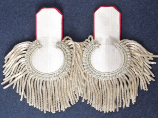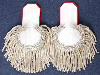 Эполеты морские контр-адмирала при форме Гвардейского экипажа, с бахромой. Золотое тканое поле, красный подбой...