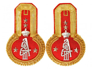 Эполеты кавалерийского типа генеральские, золотое металлическое поле, алый подбой, Россия, копия...