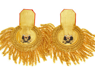 Штаб-Офицерские эполеты гренадерские, желтое поле, золотой прибор, красный кант, с Бахромой. Первая гренадерск...