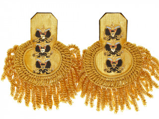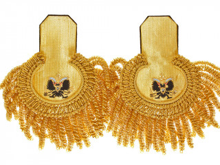 Штаб-Офицерские эполеты гренадерские, желтое поле, золотой прибор, синий кант, с Бахромой. Вторая гренадерская...