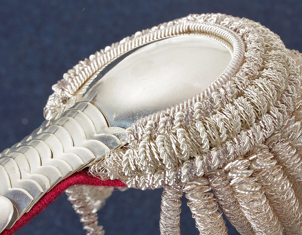 Валики и бахрома также покрыты серебром. Различия с оригинальными эполетами практически отсутствуют.