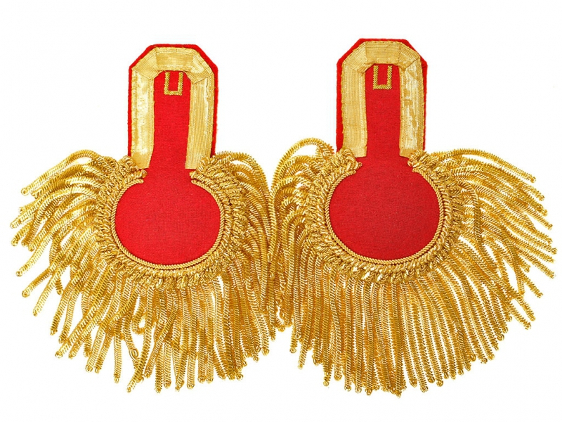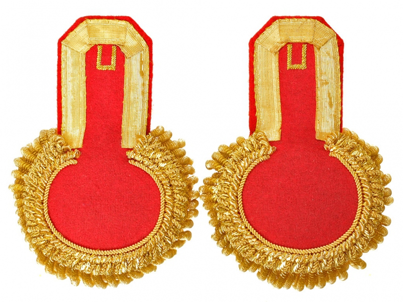 |Штаб-Офицерские эполеты пехотного типа, красное поле, золотой прибор, с бахромой. Пехота, Артиллерия. Россия, копия