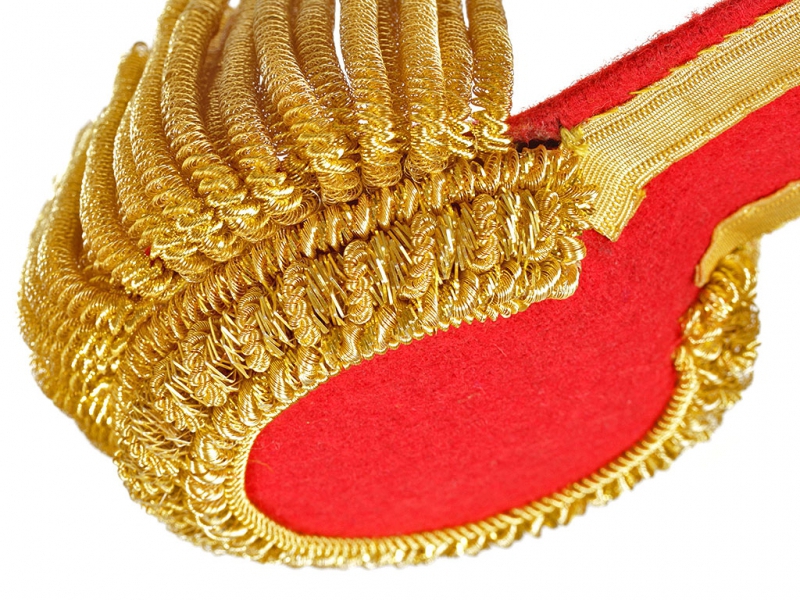 Эполеты сделаны очень качественно, практически не отличимы от оригинала, галун по корешку, шитье в месте крепления пуговицы и конечно же золотая плетеная основа-шейка, полностью повторяющая оригинал.
