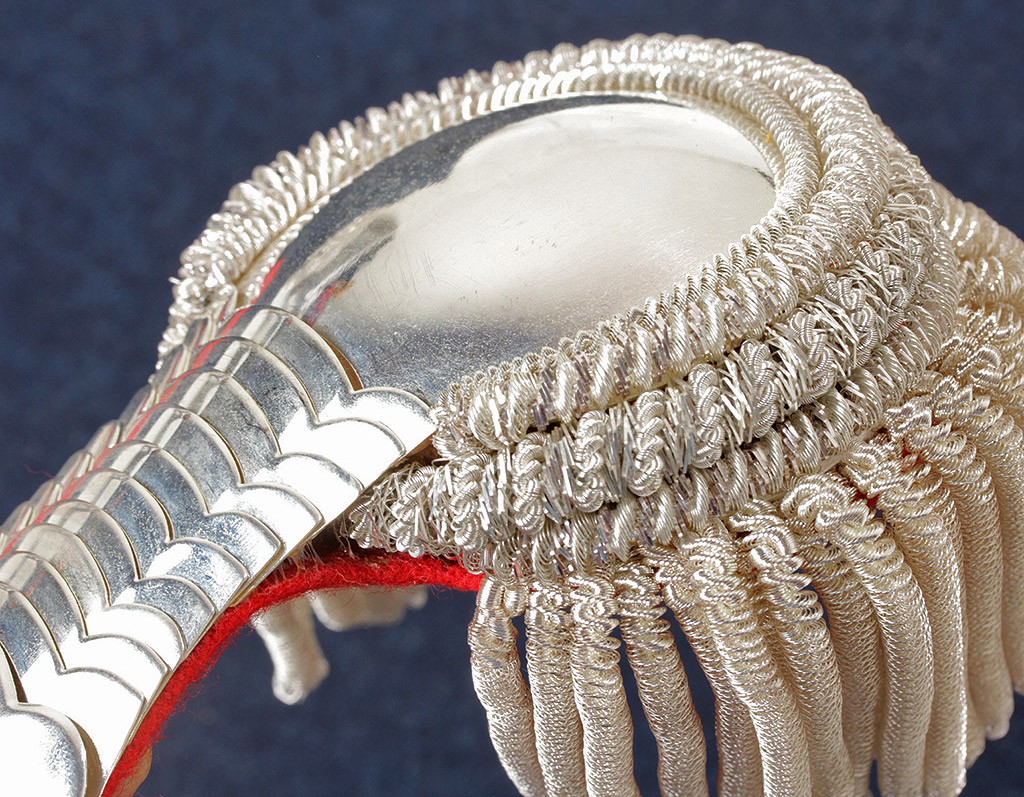 Валики и бахрома также покрыты серебром. Различия с оригинальными эполетами практически отсутствуют.