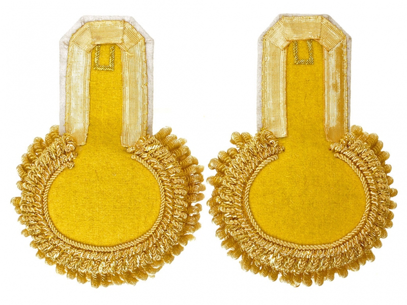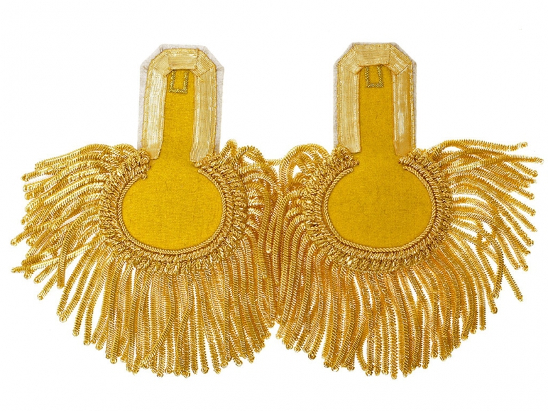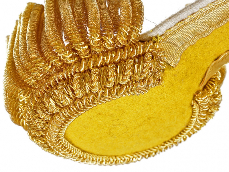 Эполеты сделаны очень качественно, практически не отличимы от оригинала, галун по корешку, шитье в месте крепления пуговицы и конечно же золотая плетеная основа-шейка, полностью повторяющая оригинал.