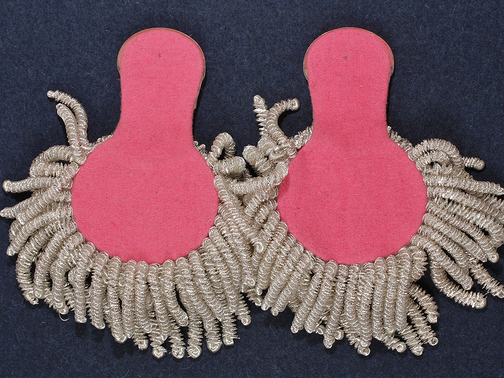 Кавалерийские эполеты с розовым подбоем носили генералы 2-го лейб-драгунского Псковского Ея Императорского Величества Марии Федоровны полка.