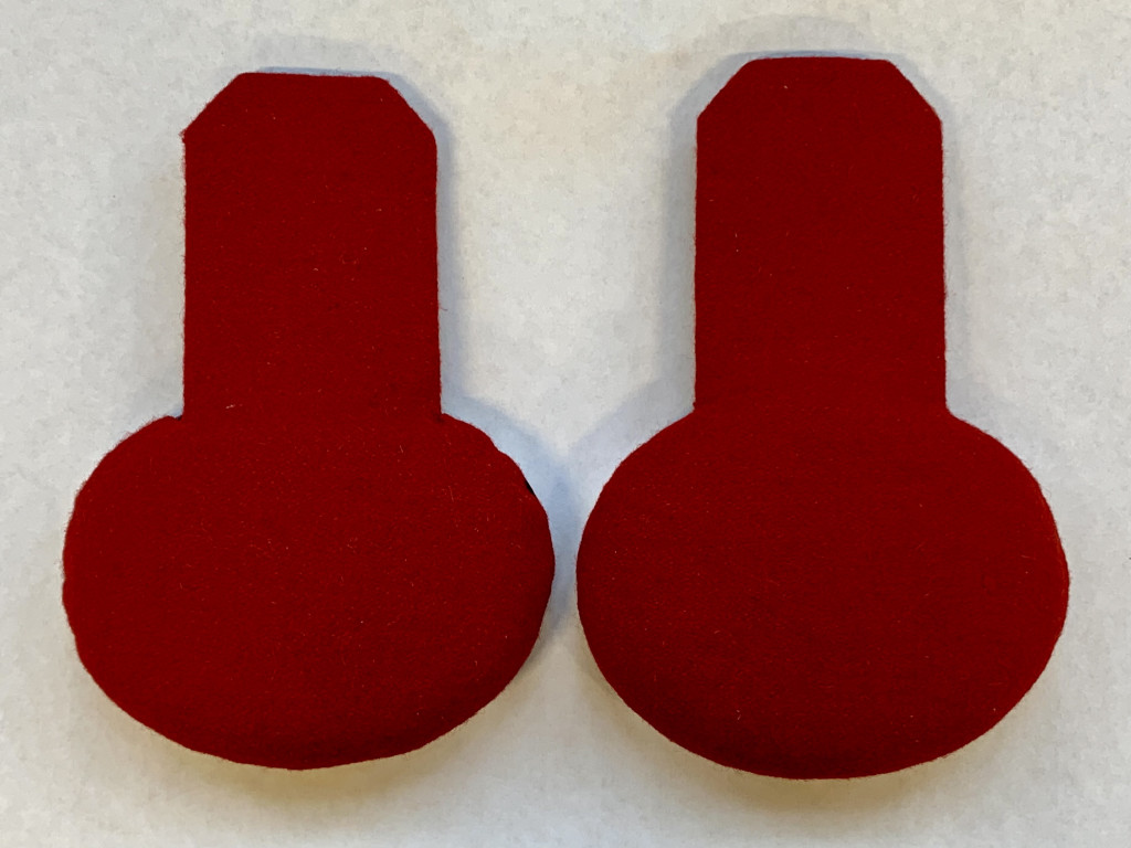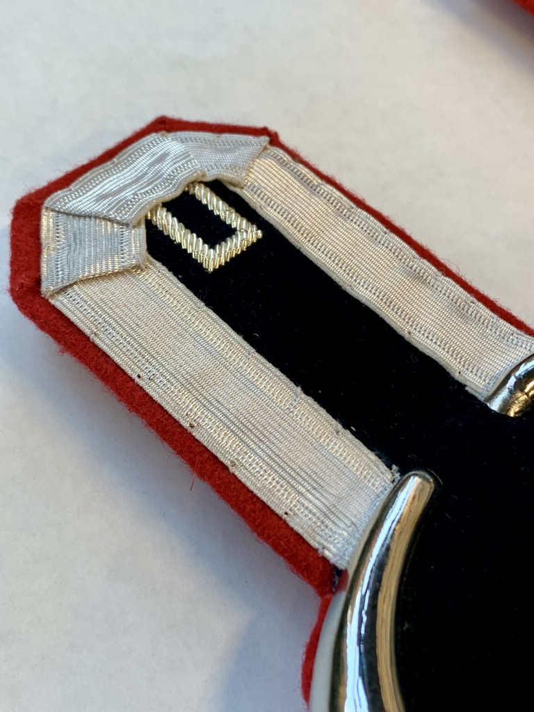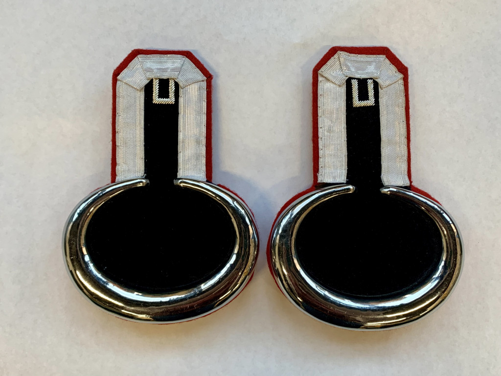 Корешок и поле эполет изготовлены из бархата тёмно-зелёного (зелёно-чёрного) цвета. Корешок обшит серебряным галуном. Выпушка на корешке (алая) красная. Шейка эполет изготовлена металлическая кованая латунная посеребренная. Подбой эполет изготовлен из (алого) красного приборного сукна.