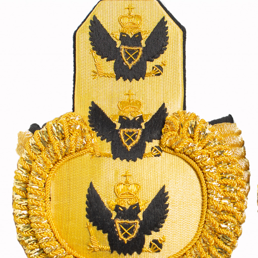 Эполеты кавалерийского типа генеральские, золотое металлическое поле, белый подбой, Россия, копия...