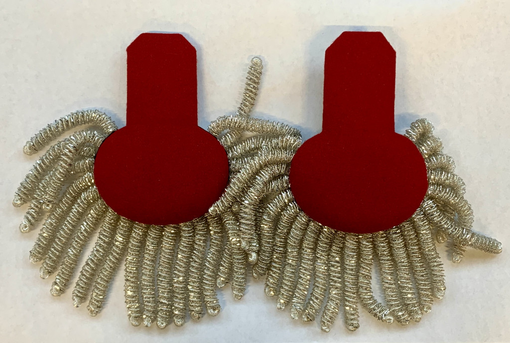 Корешок и поле эполет изготовлены из бархата тёмно-зелёного (зелёно-чёрного) цвета. Корешок обшит серебряным галуном. Выпушка на корешке (алая) красная. Шейка эполет изготовлена металлическая кованая латунная посеребренная. Подбой эполет изготовлен из (алого) красного приборного сукна. Толстая бахрома эполет (обшито поле) чиновников от V до I класса по Табели о Рангах, выполнена из сплетенной в жгуты серебряной русской канители.