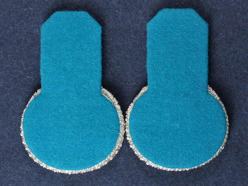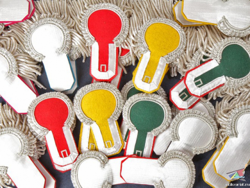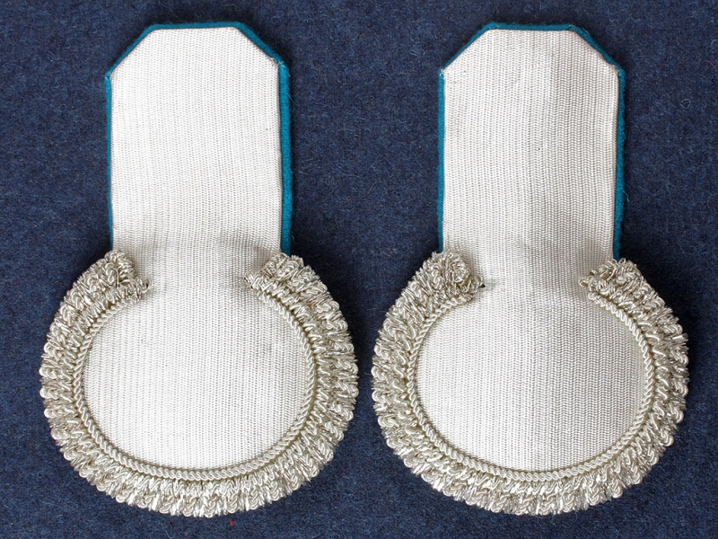Серебряные гвардейские эполеты с голубым подбоем носили офицеры корпуса топографов и военно-топографические училища.