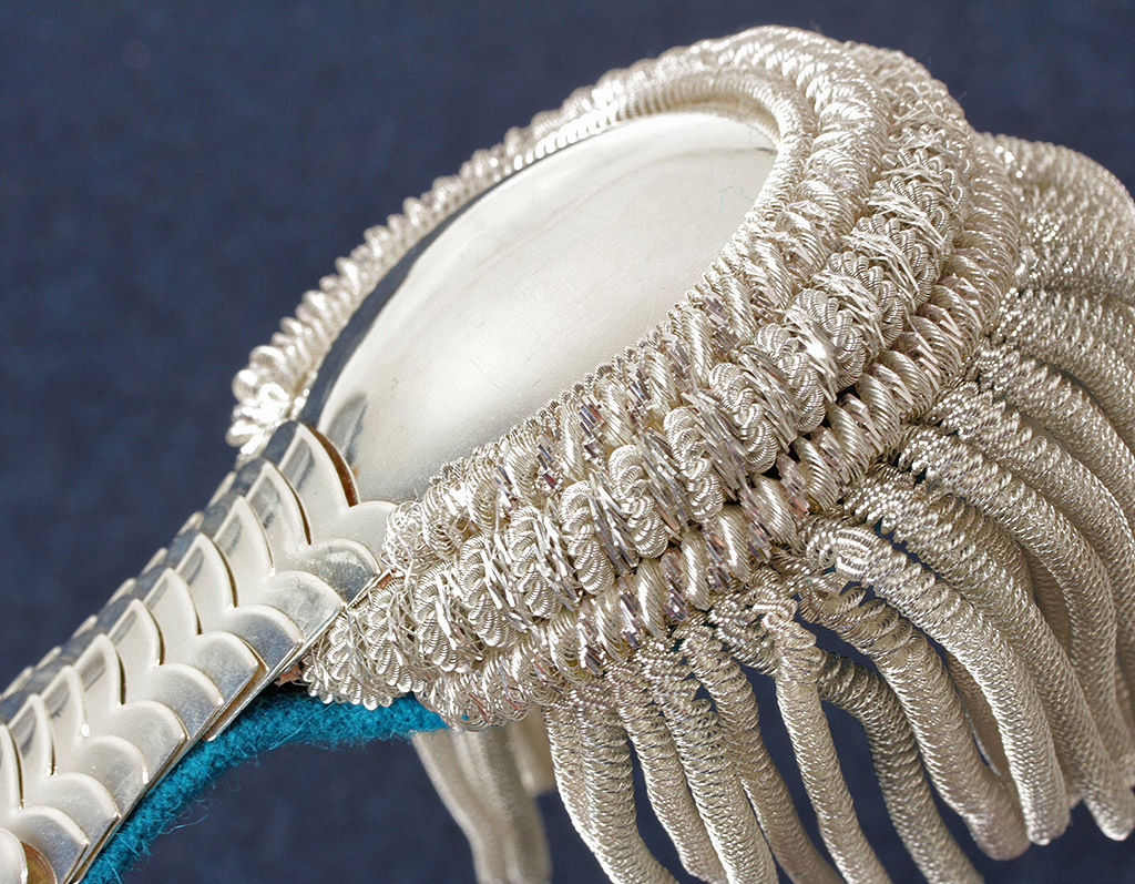 Валики и бахрома также покрыты серебром. Различия с оригинальными эполетами практически отсутствуют.
