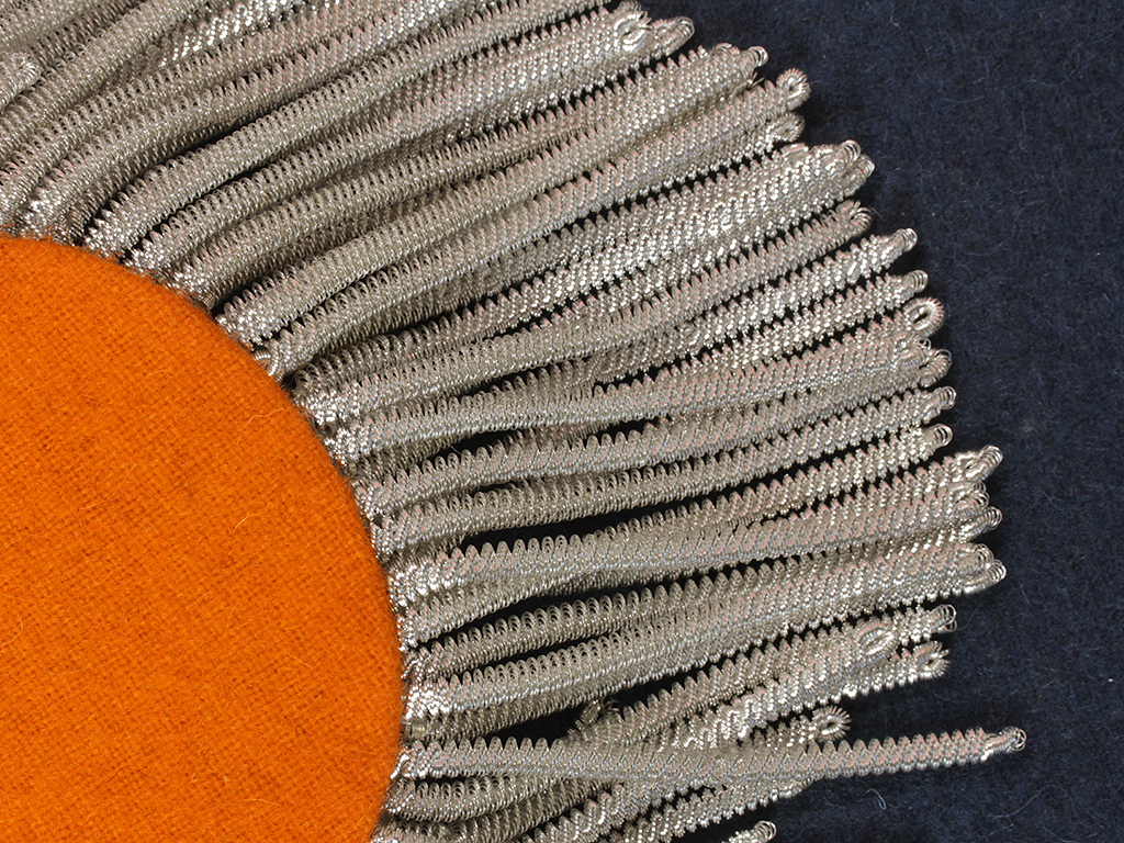 Поле эполет из наборных латунных чешуек, сделанных фабричным способом - штампом, полностью соответствующих оригиналу, чешуйки высеребрены.