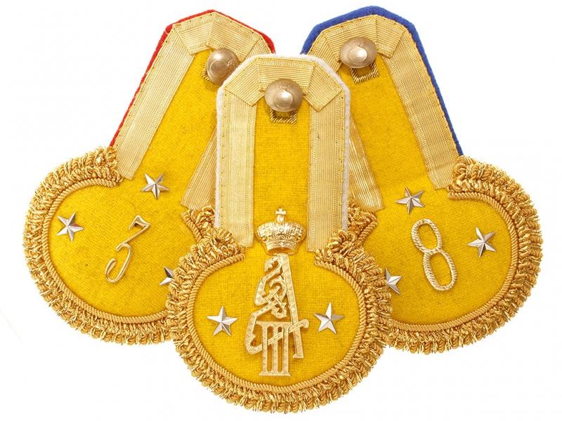 На фото для примера показаны эполеты 3го гренадерского Екатеринославского, 12 гренадерского Астраханского и 8-го гренадерского московского полков.