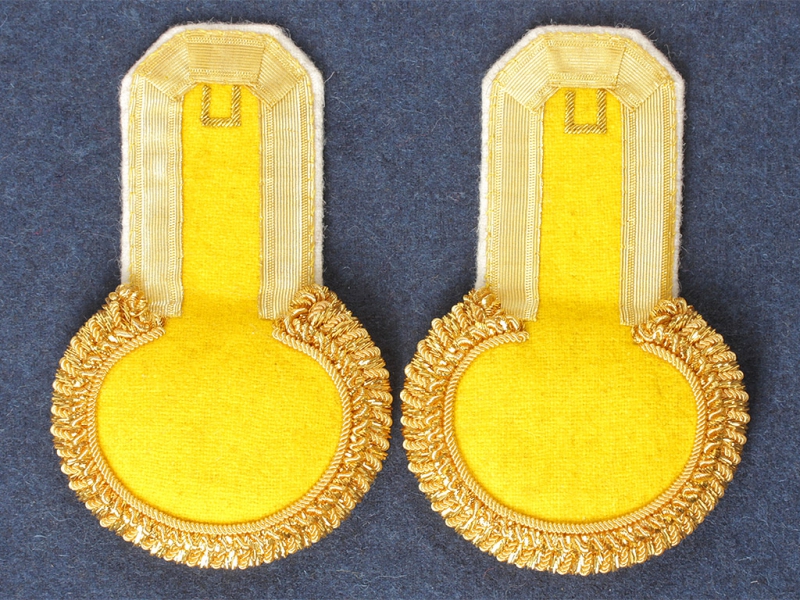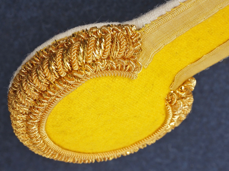 Эполеты сделаны очень качественно, практически не отличимы от оригинала, галун по корешку, шитье в месте крепления пуговицы и конечно же золотая плетеная основа-шейка, полностью повторяющая оригинал.