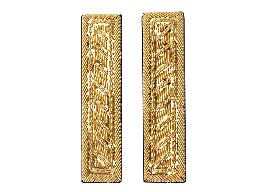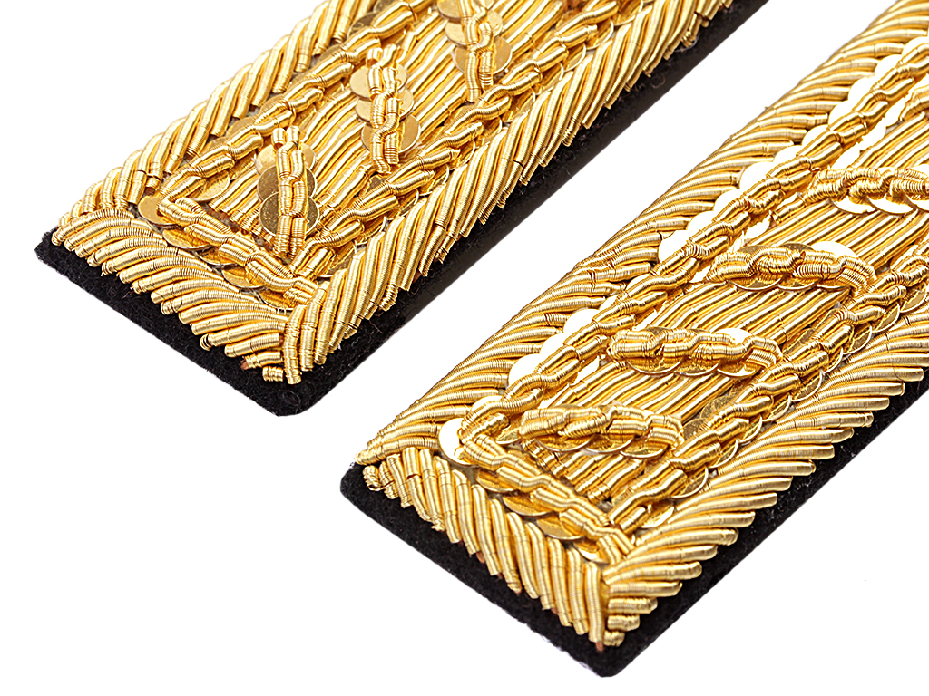 Шитые золотой канителью с блестками на черной подложке контр-погончики (контр-эполеты) для адмиральского мундира. Копия прекрасного качества, максимально приближенная к оригиналу. Незаменимый элемент адмиральского мундира.