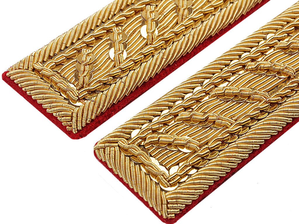 Шитые золотой канителью с блестками контр-погончики (контр-эполеты) для генеральского мундира. Копия прекрасного качества, максимально приближенная к оригиналу. Незаменимый элемент генеральского мундира.