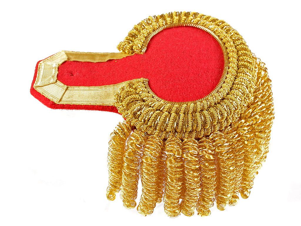 |Генеральские эполеты пехотного типа, алое поле, золотой прибор, с бахромой. Пехота, артиллерия. Россия, копия