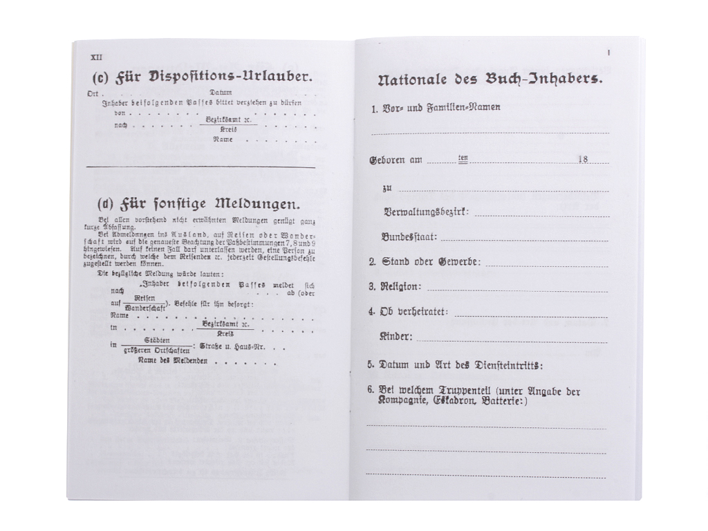 Военный билет (Militar - Pass), Бавария, копия
