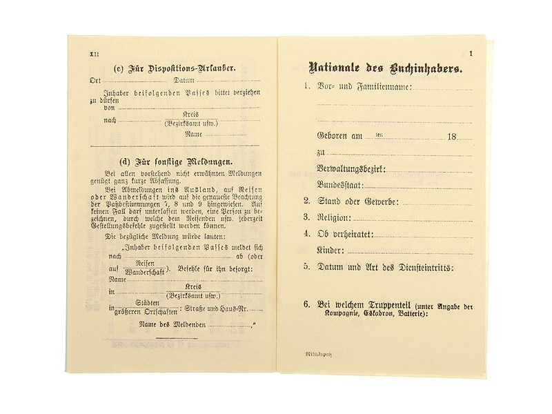 Военный билет Militarpass (Пруссия), Германия, копия