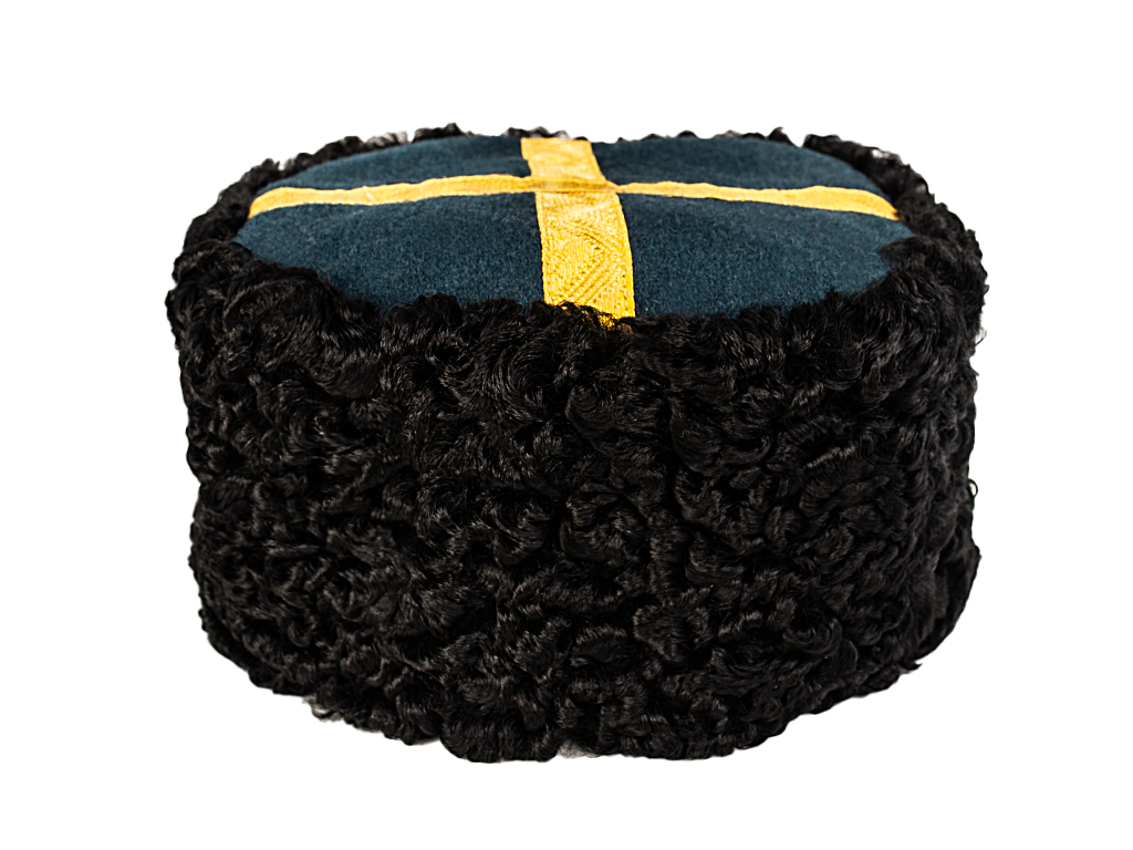 Шапка состоит из круглой тульи, черного барашкового (натурального, не крашеного) меха и круглого же суконного донышка. Барашковая тулья цилиндрической формы, мягкая высотой 2 1/8 – 2 5/16 вершка и длинною окружности - по размеру головы.