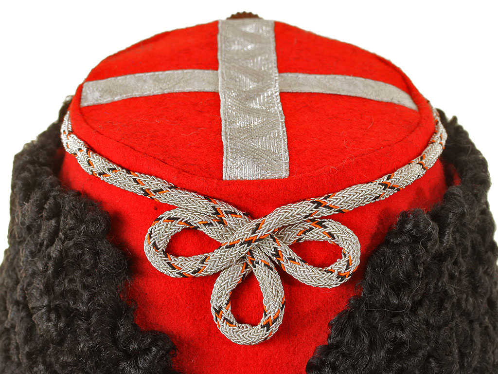 |Шапка барашковая генеральская армейских драгунских полков обр.1882 года. Алая, белый прибор. Россия, копия