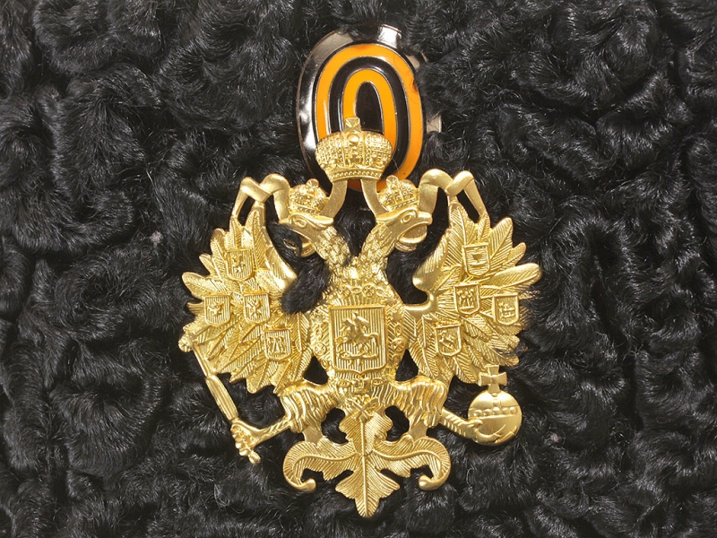Натуральный мех, в комплекте: государственный герб желтый латунный и кокарда малая образца 1881 года.