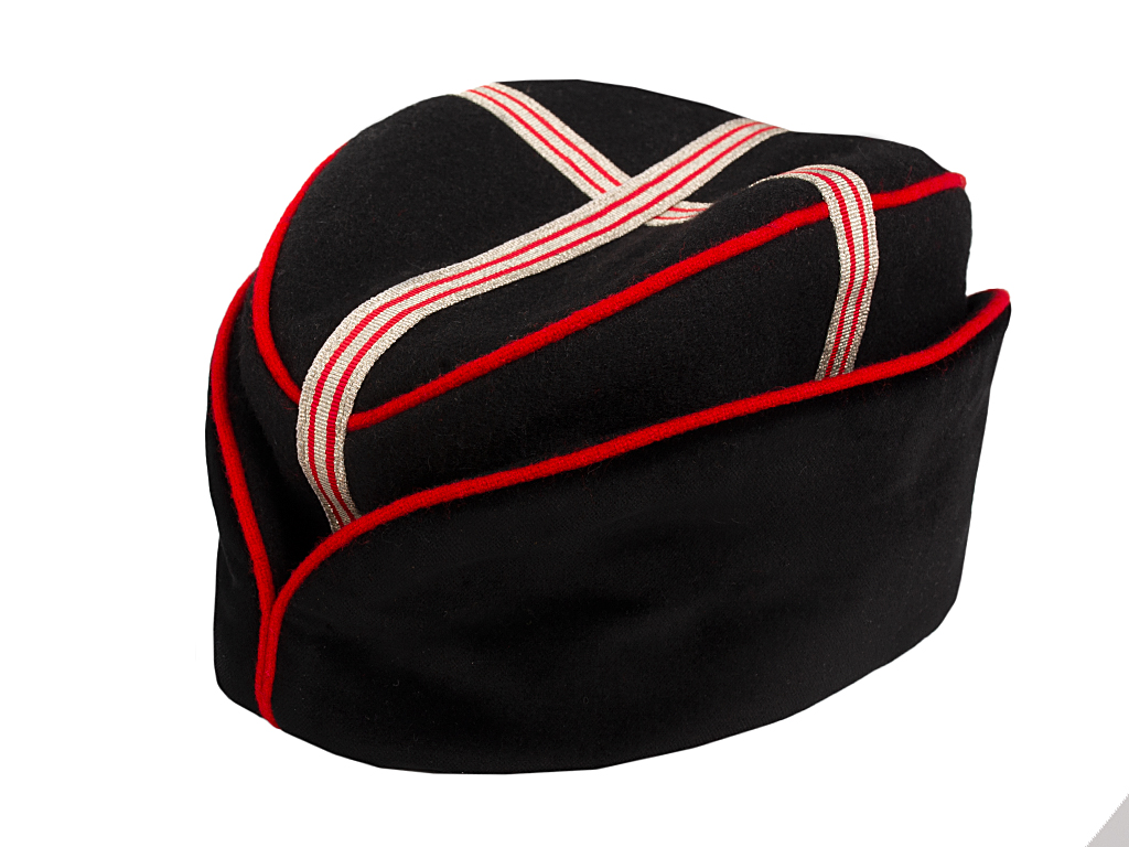 Офицерская шапка – мягкая, черного сукна, с алыми выпушками на бархатных отворотах и донышке, с кокардой, имела вид подобный драгунской шапке обр. 1883 года (ПВВ 1914 г. № 268 и № 612) на тулье и донышке имела крестообразную нашивку из серебряного галуна с двумя алыми просветами.