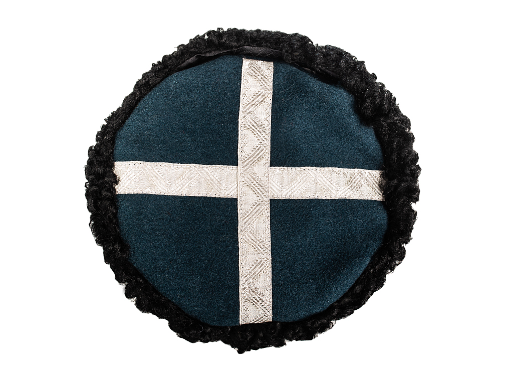 «3. Круглая шапка из черной мерлушки (приказ 1881г. №313) имеет донышко черного сукна, с крестообразной на нем нашивке золотого/серебряного узорчатого «генеральского» галуна, шириною в 5/8 дюйма…»