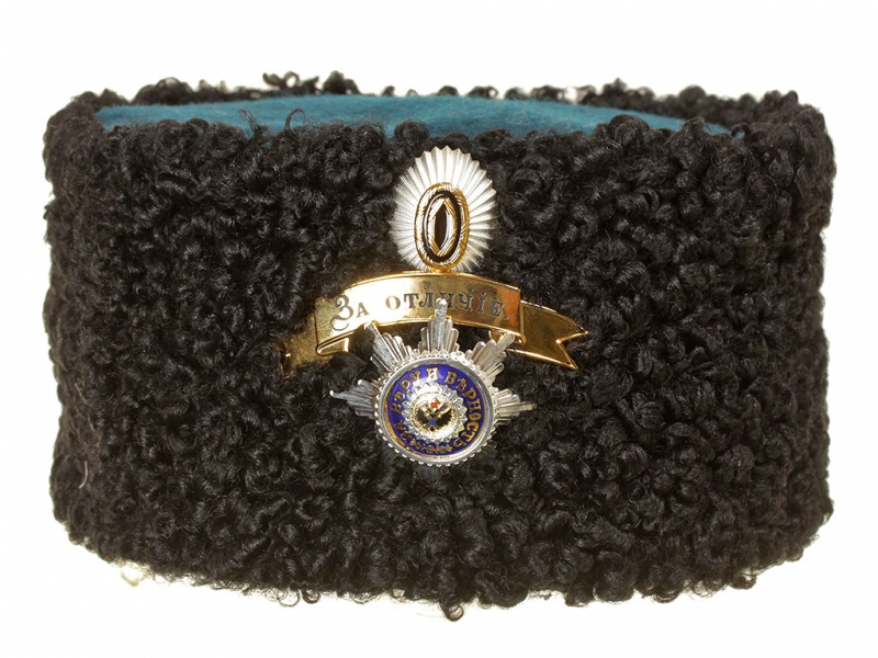 |Шапка барашковая для офицеров гвардейской пехоты обр.1881 года с лентой "За Отличие". Россия, копия
