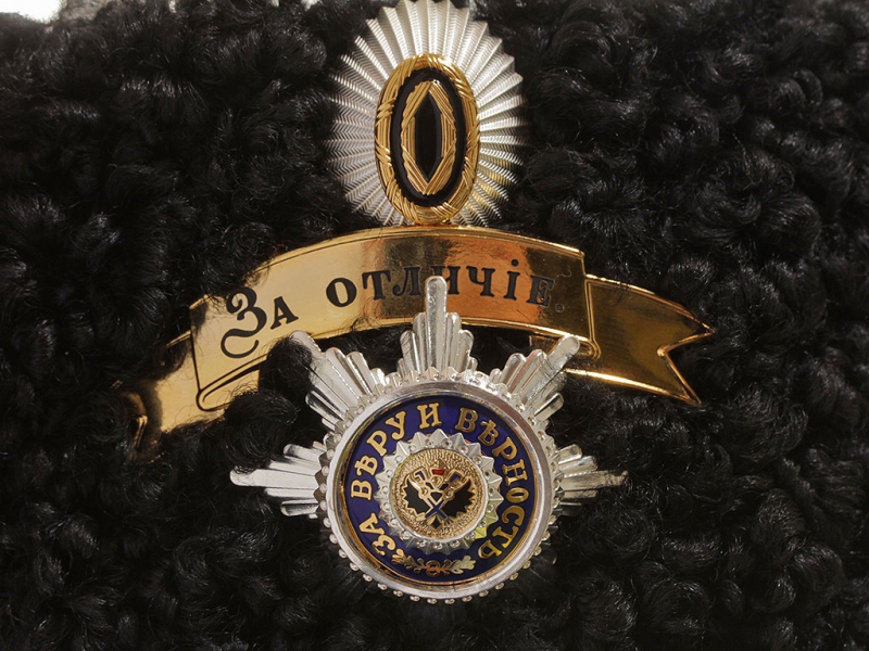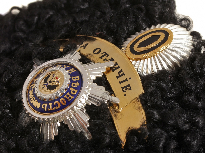 Натуральный мех, в комплекте лента "За отличие", Андреевская Звезда на головной убор и кокарда.