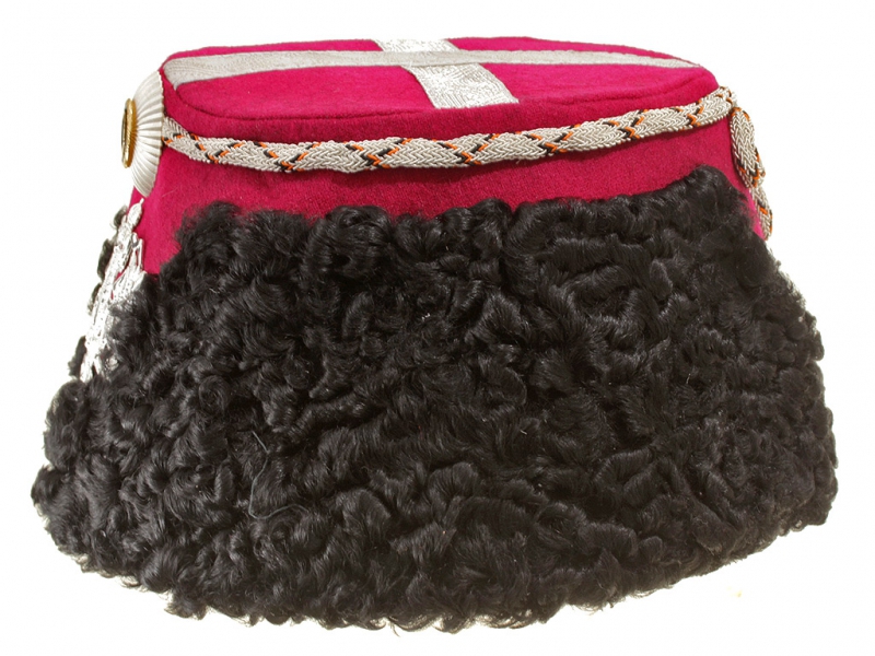 |Шапка барашковая генеральская армейских драгунских полков обр.1882 года. Малиновая, белый прибор (без ленточки). Россия, копия