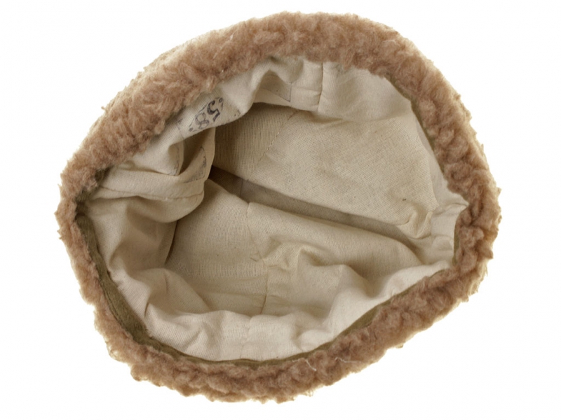 Полностью соответствует описанию (Пр. 1910 №626). Папаха состоит из колпака из сукна защитного цвета с закругленной макушкой и пришитой к колпаку меховой опушки - тульи. Колпак утеплен простеганной ватной прокладкой и имеет подкладку из натуральной плотной бязи. Тулья в виде полосы, пришитой к наружному краю колпака, разрезная: передняя ее часть пришита сверху и с боков, остальная же часть задумана непришитой для возможности ее отгибания для закрывания ушей и затылка с шеей. Поверх этой полосы пришита меховая опушка.