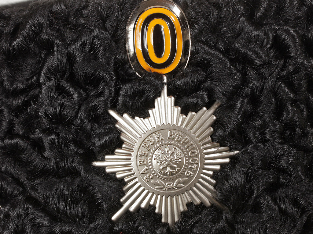 Натуральный мех, в комплекте гвардейская звезда для нижних чинов на головной убор и кокарда.
