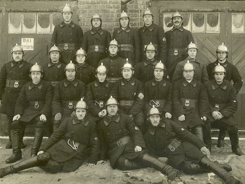 Знак на головной убор (суконную каску) комсостава пожарной охраны обр. 1925 г., желтый прибор. СССР. Копия