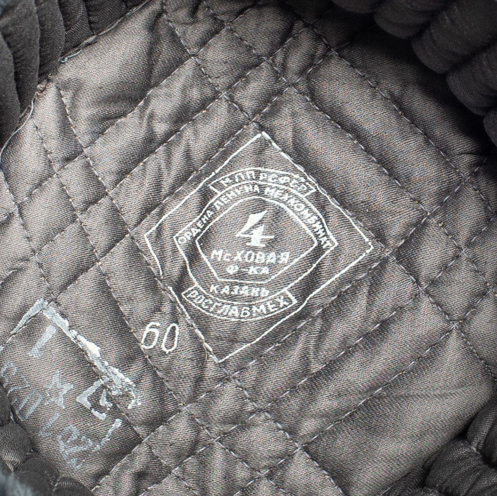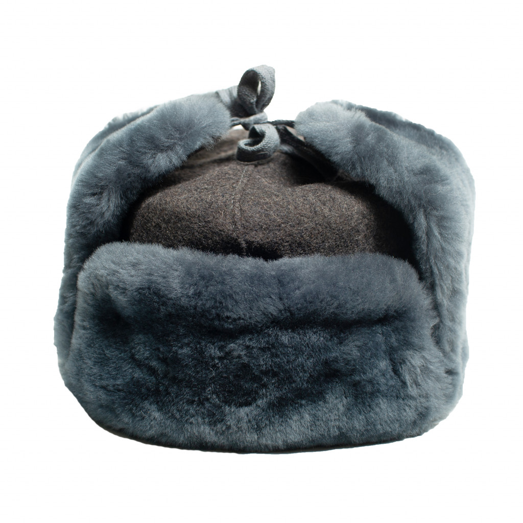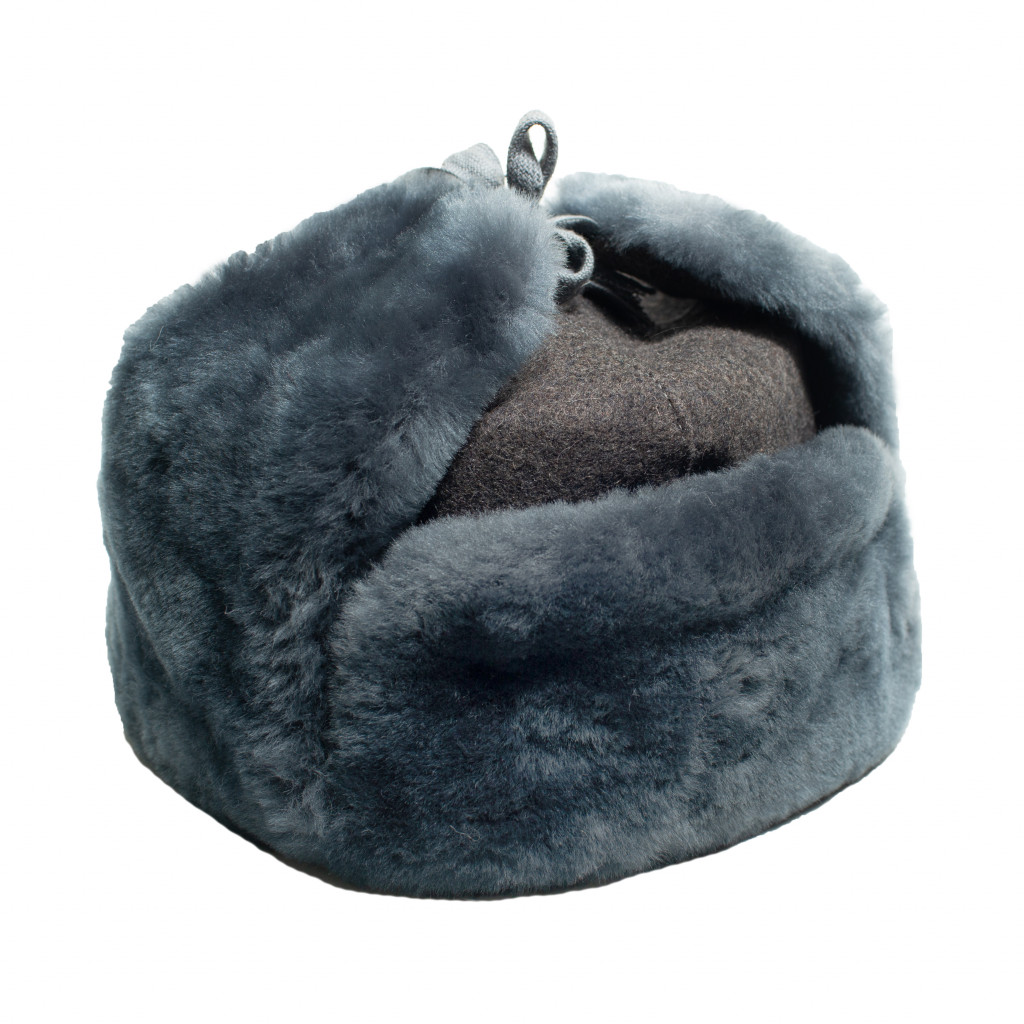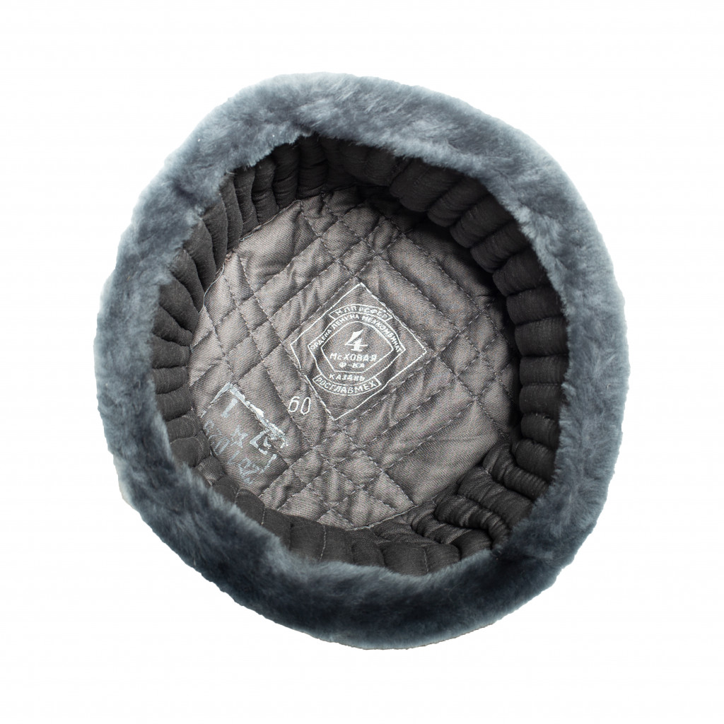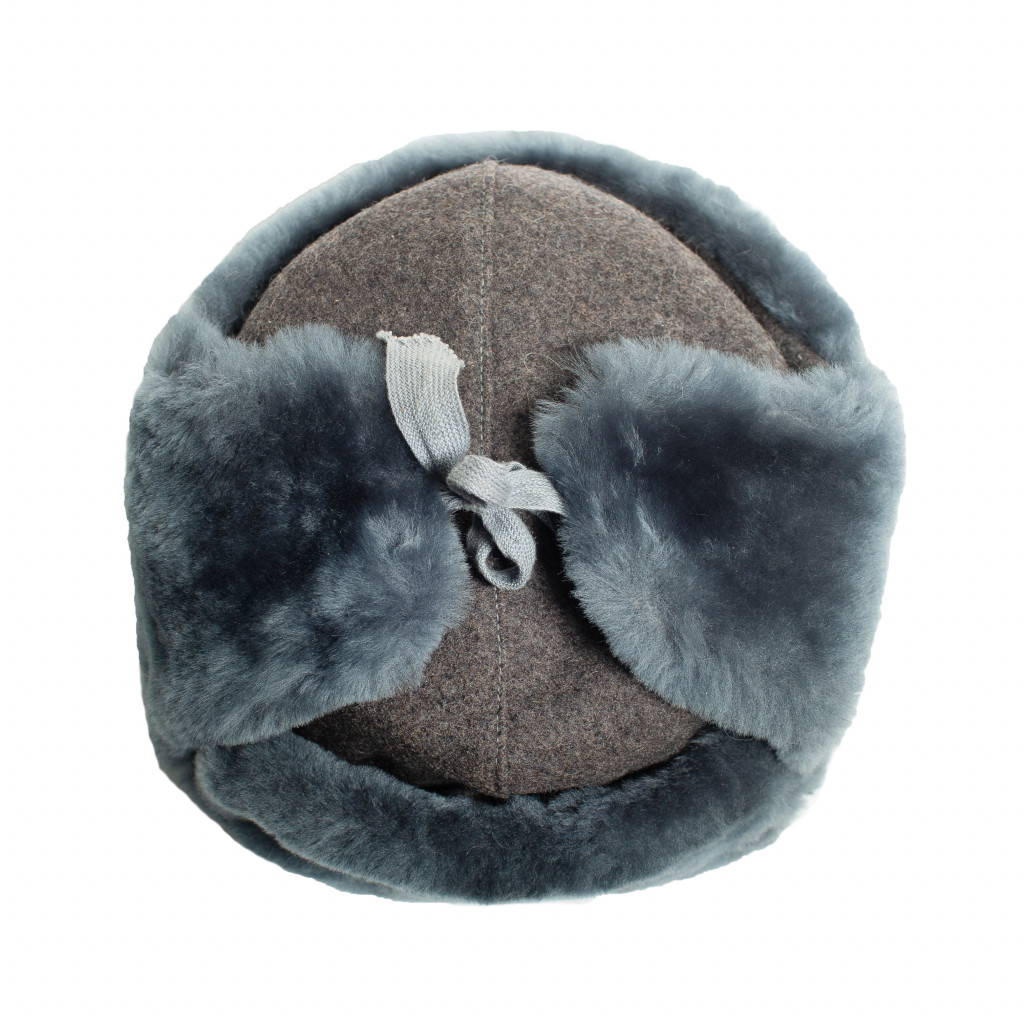 Шапка-ушанка (Рис.10.1 –Рис.10.3) состоит из окола, колпака, козырька и назатыльника с наушниками, завязывающимися на хлопчатобумажную тесьму. Шапка изготовлена (ГОСТ 486-51) из хлопчатобумажного сукна серого цвета и искусственного меха серо-голубого цвета, тесьмы серого цвета. Подкладка выполнена из серого стеганного сатина. Шапка пошита летом 1957 года.