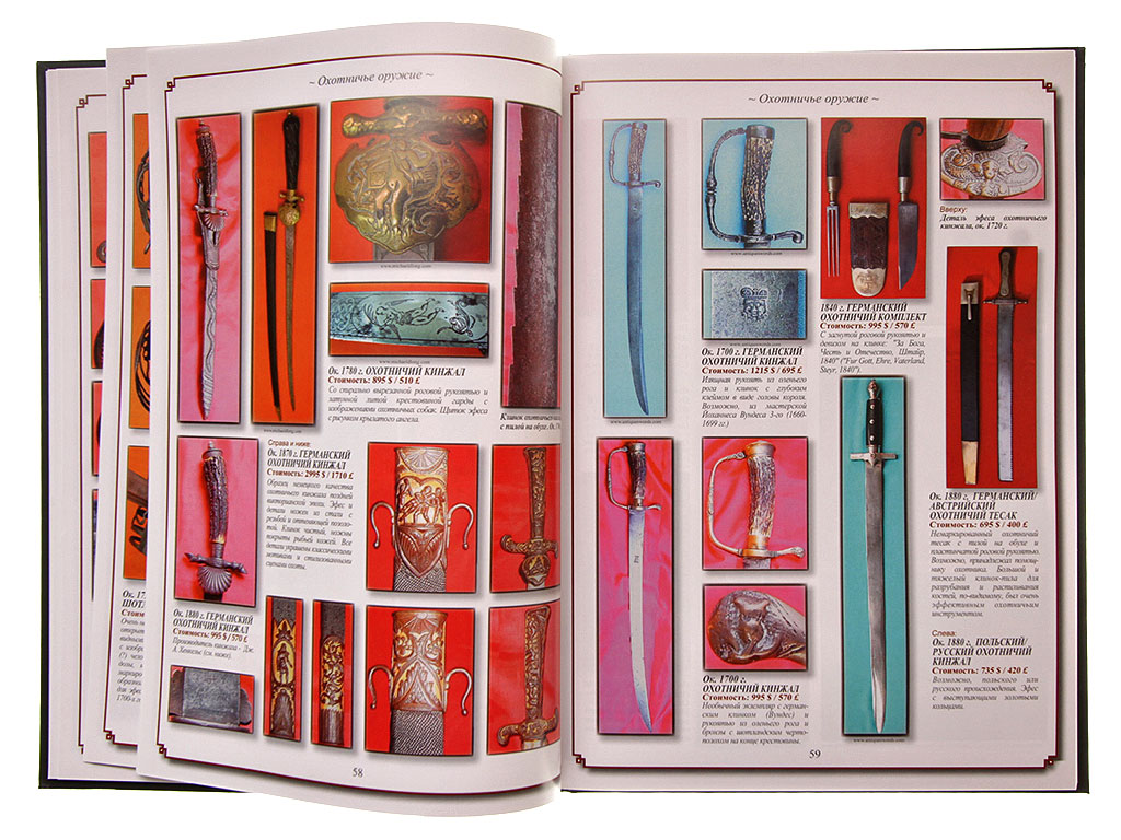 Иллюстрированный справочник с ценами. В книге рассмотрены: современный рынок антиквариата, терминология, ранние мечи, европейское охотничье оружие, кавалерийское оружие, пехотное оружие, морское оружие, шпаги, оружие авиации, японские мечи, уход и хранение оружия.