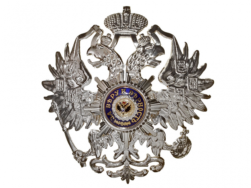 Орел с Андреевской Звездой на шапку уланского образца Лейб-гвардии Уланского Его Величества полка, посеребренный, Россия.