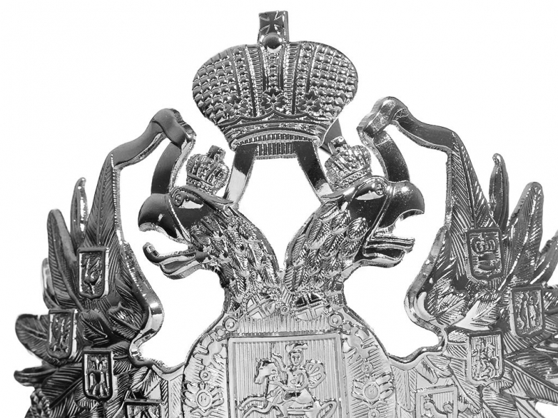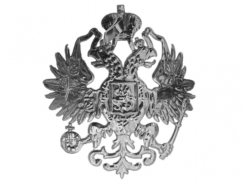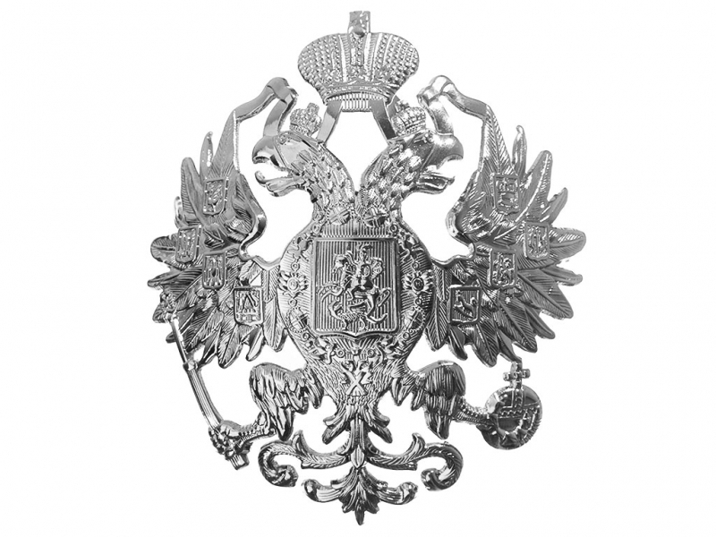 | Двуглавый Орел государственный герб на головной убор большой 11 см посеребреный офицерский, Россия, копия