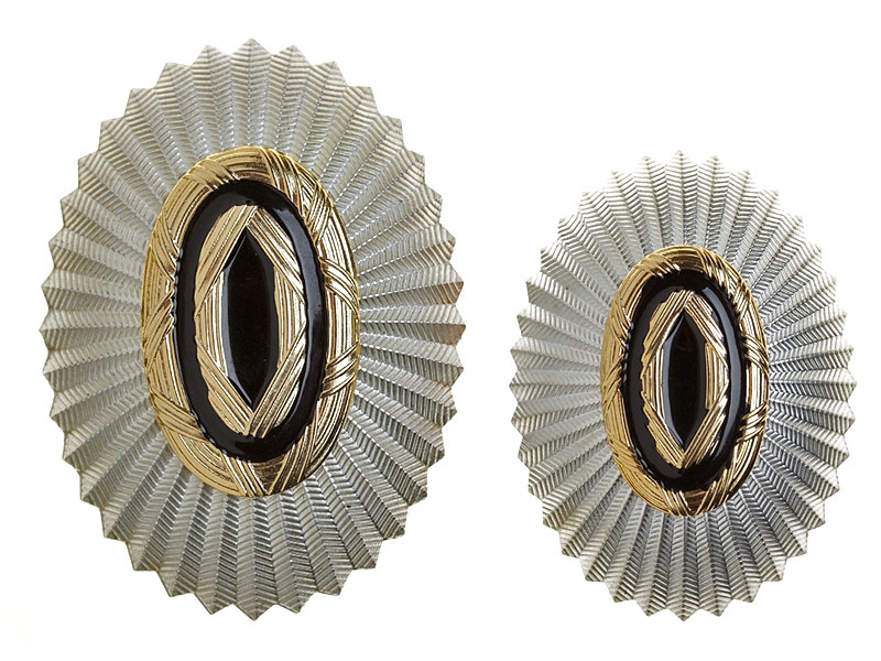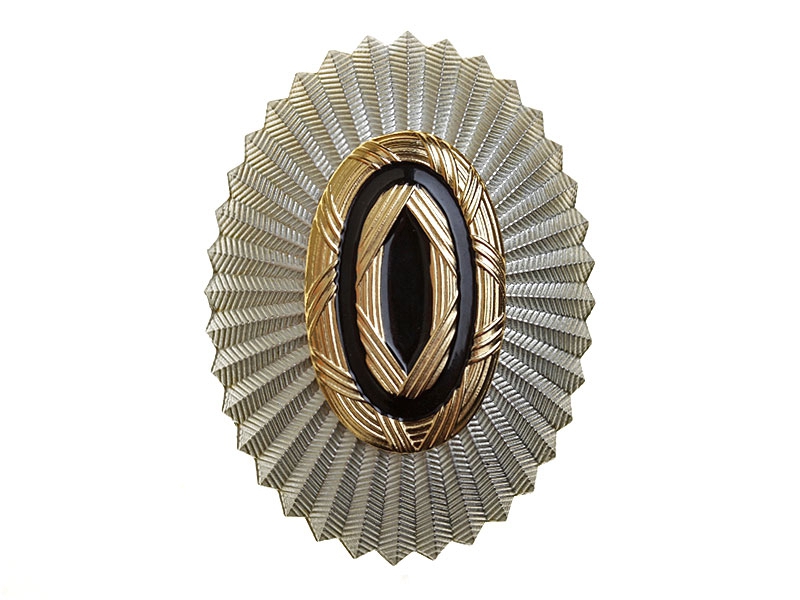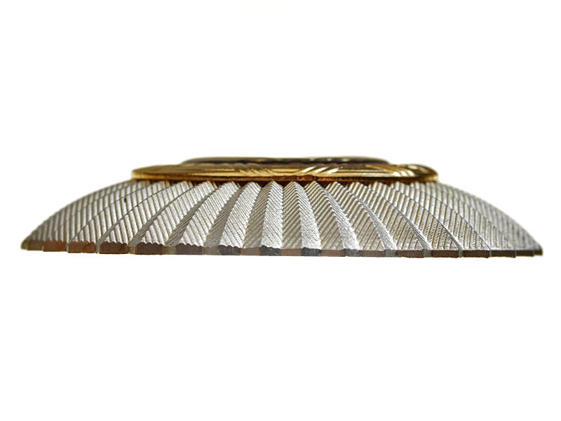 Позолота, матовое серебрение, эмалевый центральный элемент.