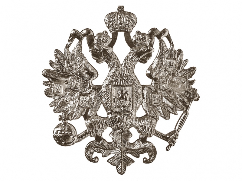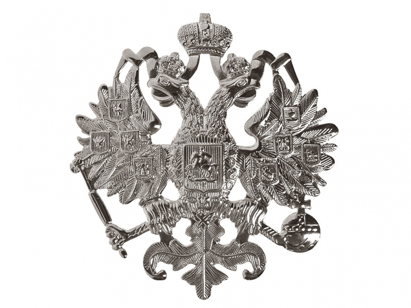 Орел на головной убор офицерский времен правления Александра III (кокарда "Государственный герб") белый посеребренный, Россия, копия