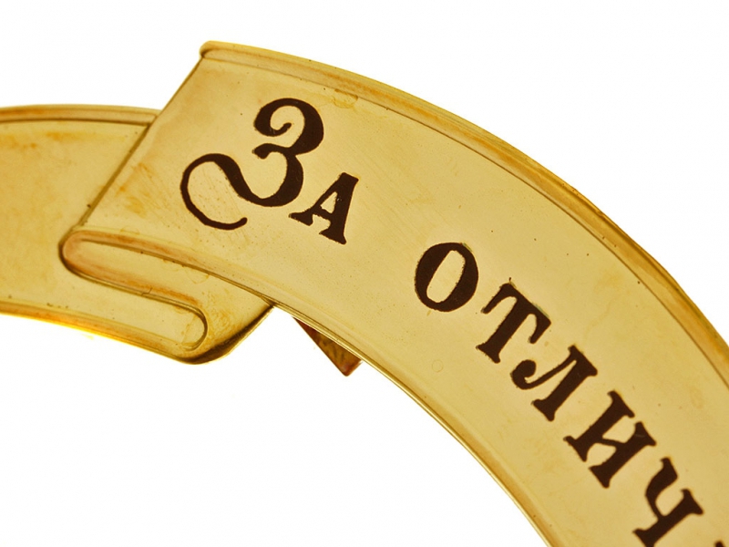 Лента ЗА ОТЛИЧИЕ на головной убор солдатская латунная большая, Россия, копия