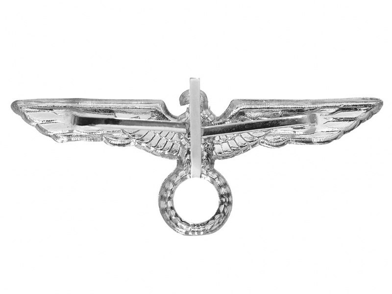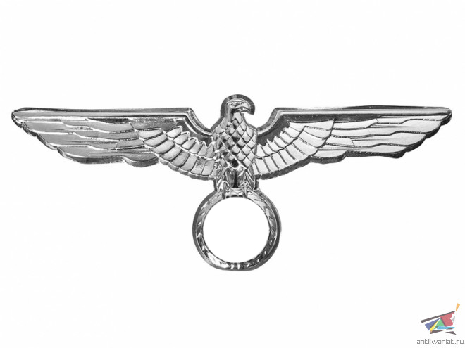 |Орел на головной убор для офицеров и унтер-офицеров Вермахта, нижних чинов при парадной форме, а также морских чиновников сухопутного состава Кригсмарине (серебрение). Германия, копия