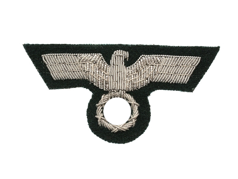 Орел на головной убор (фуражку, полевое кепи) офицера Вермахта. Вышивка металлизированной нитью на темно-зеленой суконной подложке.