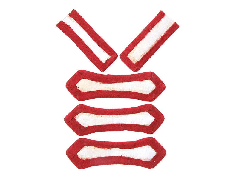 Лот из пары петлиц и трех нагрудных клапанов (разговоров) на гимнастерку, френч Артиллерии РККА, введенных в 1922 году. Для полного комgлекта требуется еще нарукавный клапан с красной звездой, обозначающий звание.