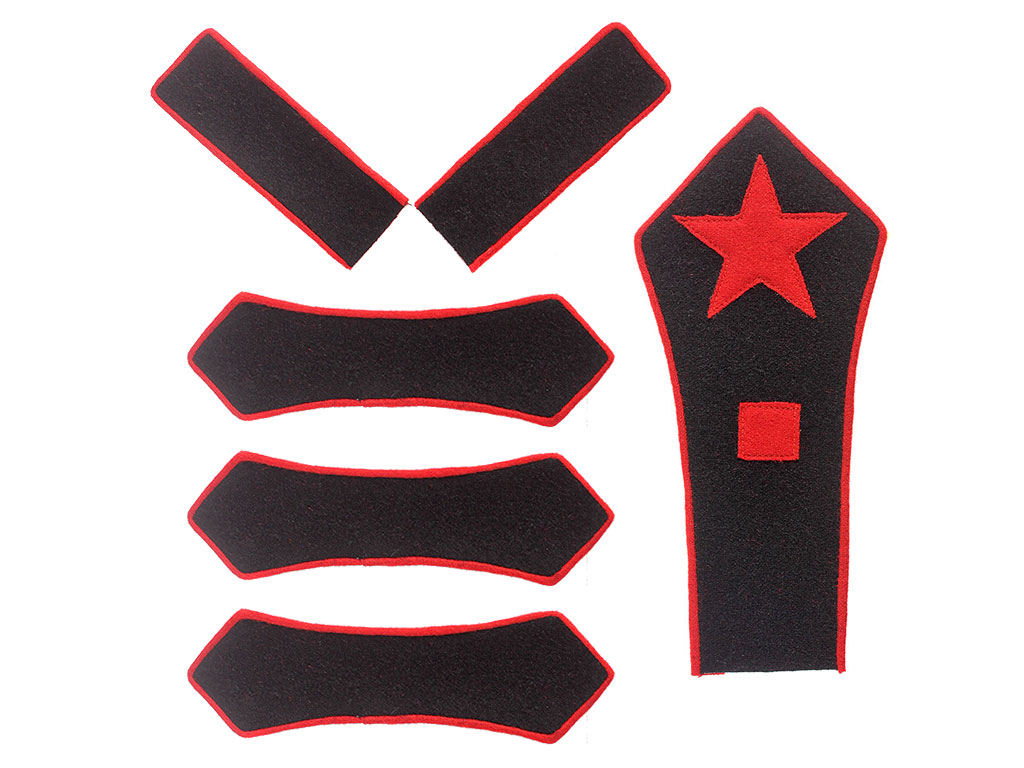 Знаки артиллерии РККА обр. 1922 года, состоящие из петлиц, разговоров и нарукавного клапана на гимнастерку/френч командира взвода, комплект РККА, копия