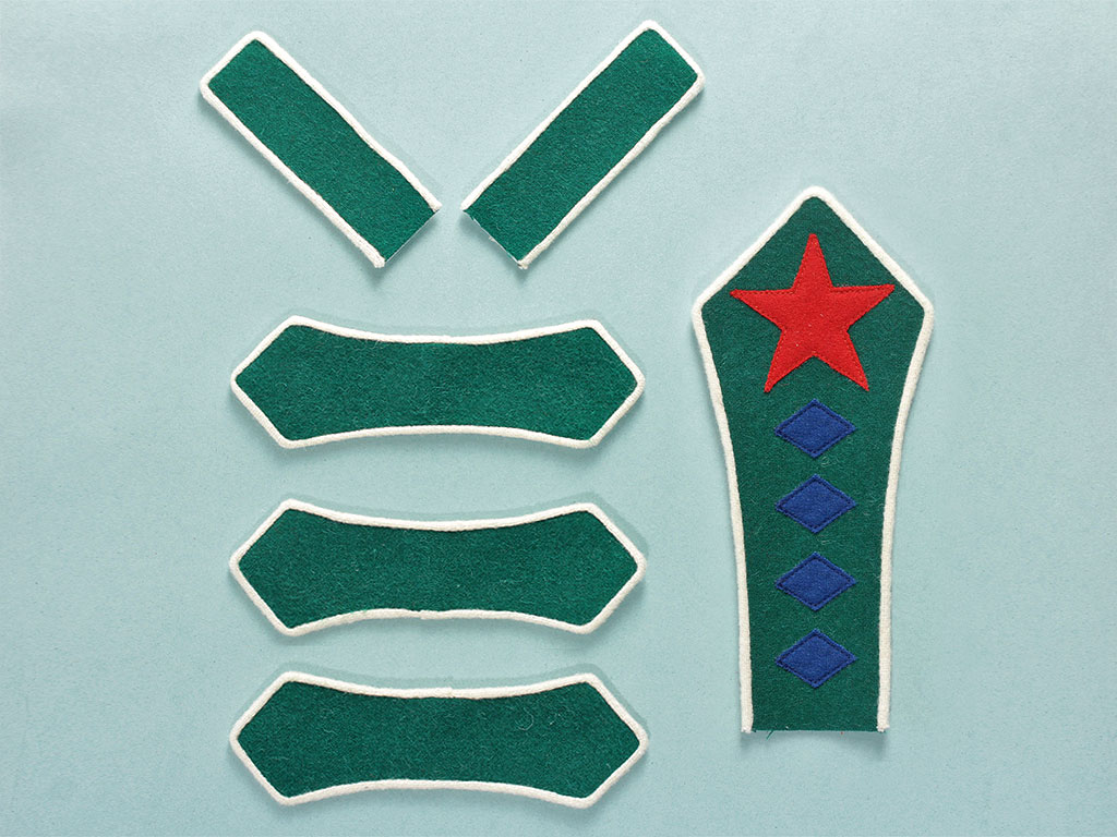 | Знаки Главного начальника снабжения и ему подведомственных учреждений РККА обр. 1922 года, состоящие из петлиц, разговоров и нарукавного клапана на гимнастерку/френч председателя, комплект РККА, копия