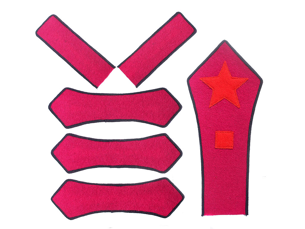 | Знаки пехоты РККА обр. 1922 года, состоящие из петлиц, разговоров и нарукавного клапана на гимнастерку/френч командира взвода, комплект РККА, копия