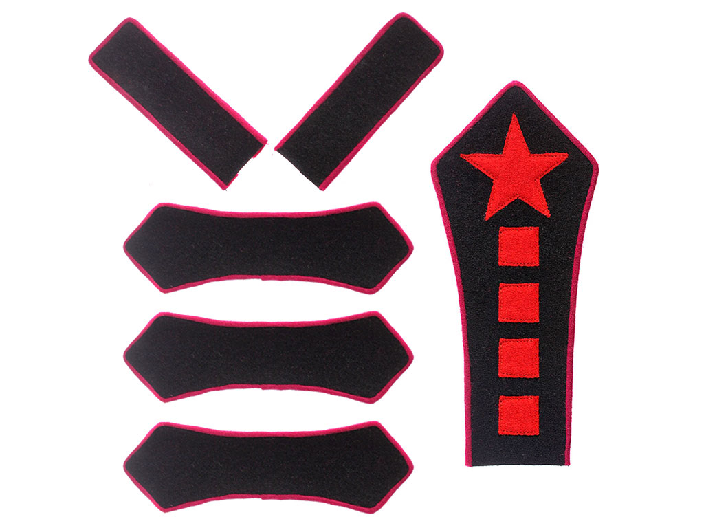 |Знаки при общеармейской формы одежды РККА обр. 1922 года, состоящие из петлиц, разговоров и нарукавного клапана на гимнастерку/френч командира полка, комплект РККА, копия