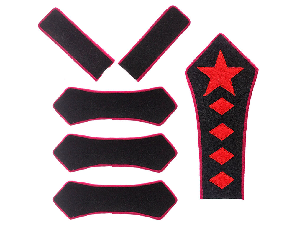 Знаки при общеармейской формы одежды РККА обр. 1922 года, состоящие из петлиц, разговоров и нарукавного клапана на гимнастерку/френч командующего армией или равный ему по должности, комплект РККА, копия